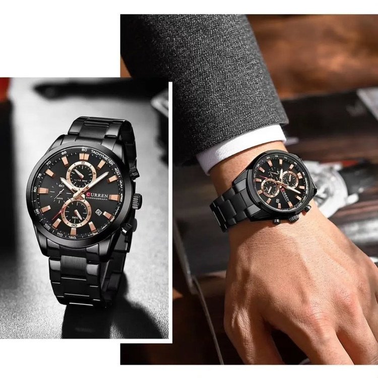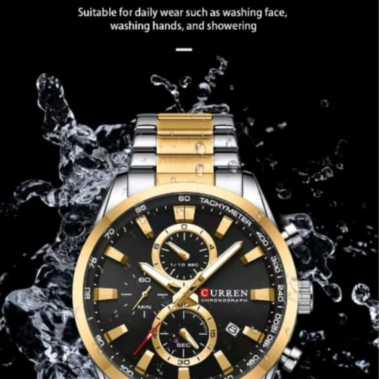 ### **ساعت مچی CURREN 8445 – ترکیب ظرافت و قدرت** ساعت **CURREN 8445** یک انتخاب بینقص برای آقایانی است که به **استایل شیک، کیفیت بالا و عملکرد دقیق** اهمیت میدهند. این مدل با طراحی مدرن و ترکیب جزئیات ظریف، هم برای استفاده روزمره و هم برای موقعیتهای رسمی یک گزینه ایدهآل محسوب میشود. #### **طراحی و ظاهر – جلوهای از شکوه و اصالت** با اولین نگاه به **CURREN 8445**، جذابیت خاص آن شما را مجذوب خواهد کرد. صفحهی بزرگ ۴۴ میلیمتری با عقربهها و نمایشگرهای ظریف، ترکیبی از سادگی و لوکس بودن را ارائه میدهد. بند **استیل ضدزنگ** آن نهتنها مقاومت بالایی دارد، بلکه در کنار طراحی ارگونومیک، احساس راحتی بینظیری روی مچ ایجاد میکند. #### **موتور قدرتمند – دقتی مثالزدنی** قلب تپندهی این ساعت، یک موتور **کوارتز ژاپنی** با دقتی فوقالعاده است که بدون هیچگونه اختلال، زمان را با بیشترین میزان اطمینان نمایش میدهد. این ویژگی، CURREN 8445 را به یک همراه همیشگی تبدیل کرده که همیشه و در هر شرایطی، دقیق و قابلاعتماد است. #### **کرنوگراف فعال – فراتر از یک ساعت معمولی** داشتن **سه صفحهی کرنوگراف فعال**، این ساعت را به ابزاری حرفهای برای اندازهگیری زمان تبدیل میکند. این قابلیت نهتنها کاربردی است، بلکه جلوهای اسپرت و مدرن به ساعت میبخشد و باعث میشود در هر موقعیتی، از جلسات کاری تا ورزشهای سبک، بهترین عملکرد را داشته باشید. #### **کیفیت ساخت – ترکیب استحکام و زیبایی** بند فلزی **CURREN 8445** از استیل ضدزنگ با کیفیت بالا ساخته شده که علاوه بر دوام زیاد، در برابر تغییر رنگ نیز مقاوم است. **شیشهی هاردلکس** روی صفحهی ساعت، از آن در برابر خط و خش محافظت میکند و باعث میشود همیشه درخشندگی و زیبایی خود را حفظ کند. #### **مقاومت در برابر آب – برای ماجراجوییهای روزمره** با مقاومت تا **۳۰ متر در برابر آب**، این ساعت در برابر پاششهای معمولی آب، مثل شستوشوی دست یا باران، کاملاً مقاوم است. این ویژگی خیال شما را از بابت استفادهی روزمره راحت میکند. ### **جمعبندی – ساعتی که همیشه متمایزتان میکند** **CURREN 8445**، فراتر از یک ساعت معمولی است؛ ترکیبی از **دقت، کیفیت و طراحی خیرهکننده** که میتواند تکمیلکنندهی استایل شما باشد. اگر به دنبال ساعتی هستید که در هر شرایطی بدرخشد، این مدل دقیقاً همان چیزی است که میخواهید.