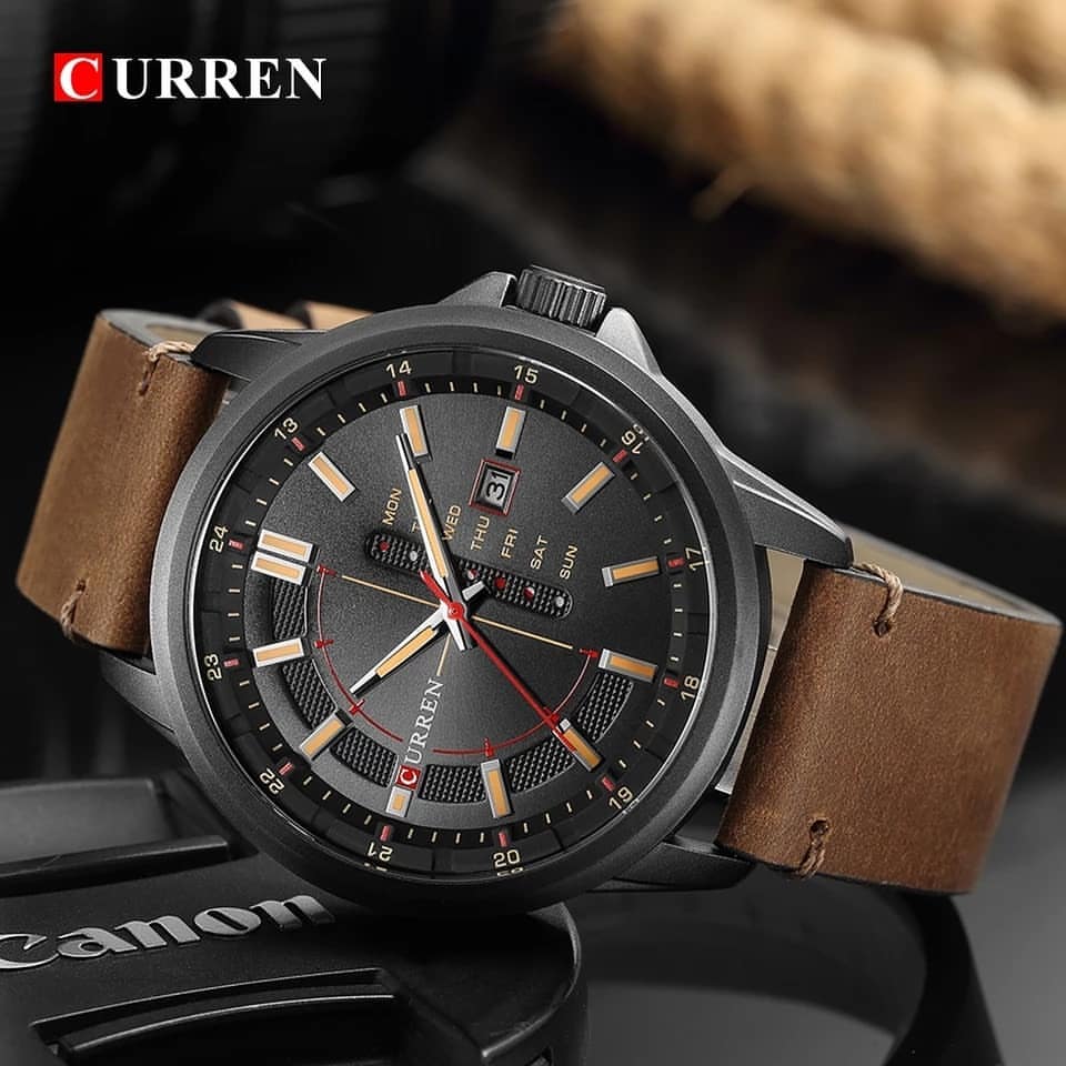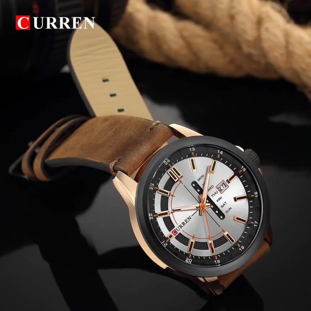 ساعت مچی مردانه کارن بندچرمی CURREN 8307 ساعت اورجینال ضداب