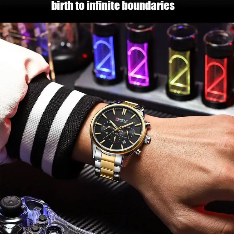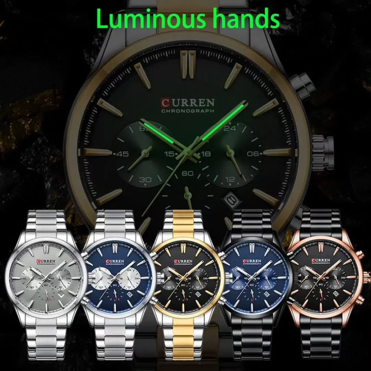 ساعت **CURREN 8446** یکی از مدلهای محبوب و پرفروش برند کورن است که ترکیبی از طراحی مدرن، عملکرد دقیق و کیفیت ساخت بالا را ارائه میدهد. این مدل با ویژگیهای منحصربهفرد خود، انتخابی عالی برای آقایانی است که به دنبال یک ساعت شیک و کاربردی برای استفاده روزمره و رسمی هستند. --- ### **طراحی و کیفیت ساخت** CURREN 8446 با طراحی کلاسیک و لوکس خود، در نگاه اول توجه هر کسی را جلب میکند. بدنه این ساعت از **آلیاژ روی** ساخته شده است که علاوه بر استحکام بالا، وزن مناسبی دارد. بند استیل ضدزنگ آن، دوام طولانیمدتی را تضمین کرده و ظاهری مدرن و حرفهای به ساعت میبخشد. **قفل کلیپسی با محافظ** نیز راحتی و امنیت بالایی را برای کاربر فراهم میکند. **صفحه نمایش آن دارای طراحی خوانا و مدرن است.** نشانگرهای درخشان روی عقربهها و اعداد، خوانایی ساعت را در نور کم افزایش داده و به شما امکان مشاهده زمان در هر شرایطی را میدهد. --- ### **عملکرد و دقت** این مدل به **موتور کوارتز با دقت بالا** مجهز است که عملکردی دقیق و بدون خطا را ارائه میدهد. علاوه بر نمایش زمان، **کرنوگراف فعال آن قابلیت اندازهگیری زمان را با دقت بالا فراهم میکند**. صفحههای کوچک داخل صفحه اصلی برای نمایش ثانیه، دقیقه و ساعت کرنوگراف طراحی شدهاند که هم عملکردی کاربردی دارند و هم زیبایی خاصی به ساعت میبخشند. --- ### **مقاومت و دوام** یکی از ویژگیهای مهم CURREN 8446، **مقاومت در برابر آب در سطح 3ATM** است که آن را در برابر پاشش آب، شستوشوی دست و تعریق مقاوم میکند. این ویژگی، باعث میشود که ساعت در شرایط روزمره کاملاً قابلاعتماد باشد. همچنین، استفاده از **شیشه معدنی مقاوم در برابر خش** باعث افزایش دوام ساعت در طول زمان شده است. --- ### **رنگبندی متنوع و جذاب** این مدل در چندین رنگ متنوع عرضه شده است که هرکدام جذابیت خاص خود را دارند: - مشکی با جزئیات طلایی - نقرهای با صفحه مشکی - تمام مشکی - ترکیب آبی و نقرهای این تنوع رنگی باعث شده است که هر فرد بتواند متناسب با سلیقه و استایل خود، گزینهای ایدهآل را انتخاب کند. --- ### **جمعبندی** CURREN 8446 یک ساعت همهکاره است که در هر موقعیتی میتوان از آن استفاده کرد. **ترکیب طراحی شیک، متریال باکیفیت، موتور دقیق، کرنوگراف کاربردی و مقاومت در برابر آب** باعث شده است که این مدل به یکی از بهترین گزینهها در رده قیمتی خود تبدیل شود. اگر به دنبال ساعتی هستید که هم برای موقعیتهای رسمی و هم روزمره مناسب باشد، این مدل میتواند انتخابی عالی برای شما باشد.